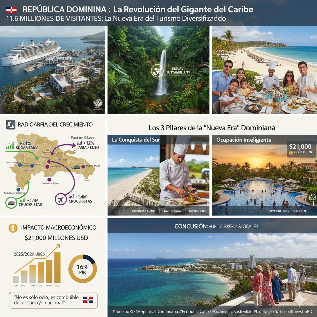 🇩🇴 República Dominicana: La Revolución del Gigante del Caribe El camino hacia los 11.6 millones de visitantes y la nueva era del turismo diversificado. 🚀 El Hito Histórico: Rompiendo el…