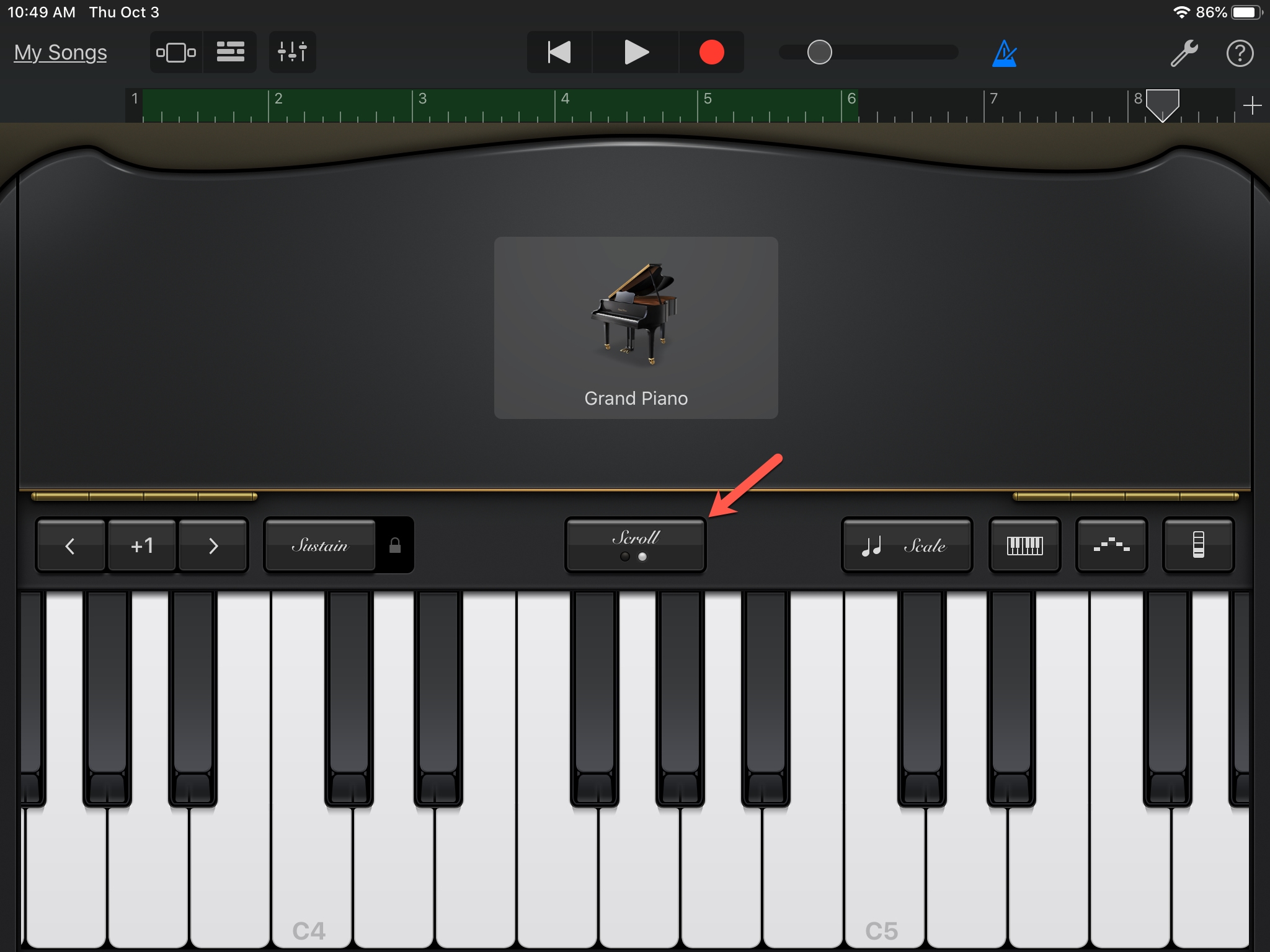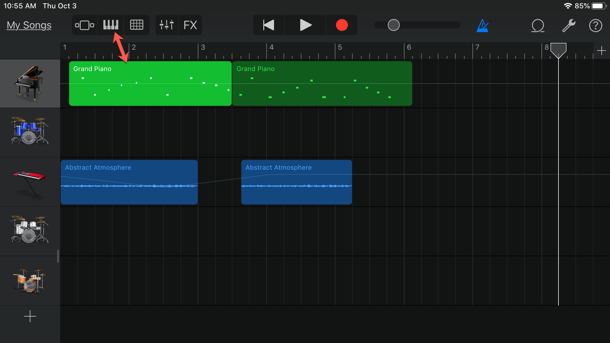 Si está utilizando GarageBand para su iPad, puede abrir el teclado con la misma facilidad. Abre tu música, luego sigue estos pasos.