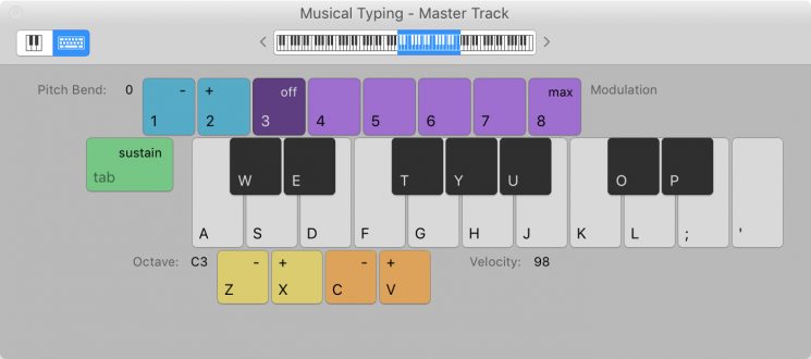 El teclado en GarageBand